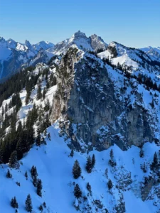 Anfangs ging es durch ein Waldstück in dem nur noch sehr wenig Schnee das vorankommen stark erschwerten. Ein ständiges an und Abschnallen der Skier liessen noch nicht so richtig Aufstiegsflow aufkommen.