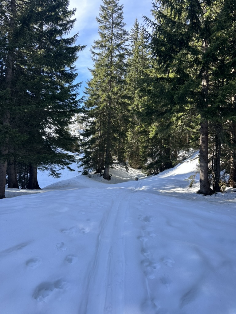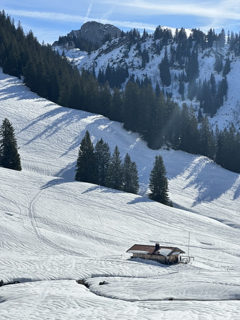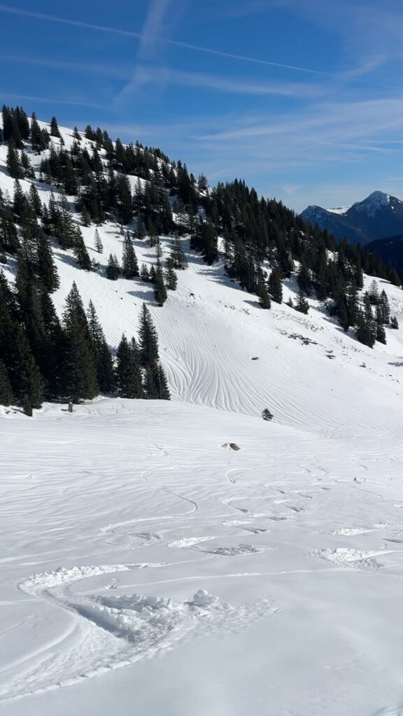Um den Bus noch zu erwischen ging es dann gleich mit Vollgas wieder runter zum Taubensteinparkplatz. Schneequalität war hier eher durchwachsen. Gut ist halt auch ein Westhang.